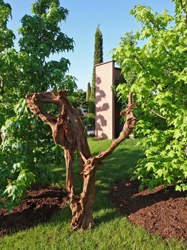 Natürliche und geformte Kunstwerke aus Holz.
